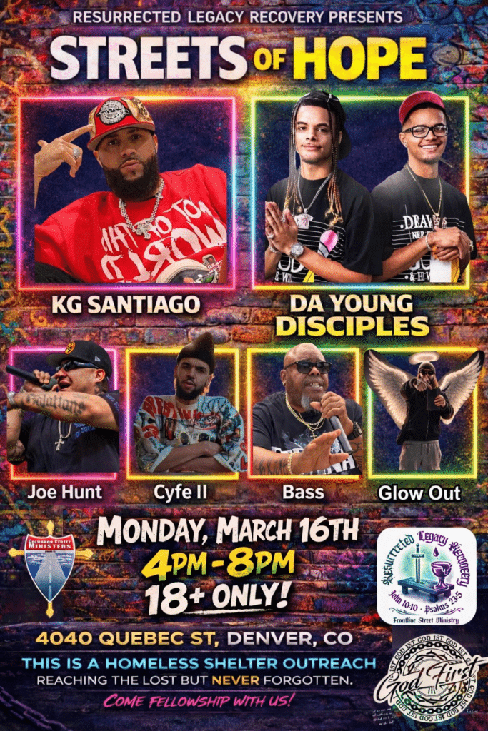 Hosted in partnership with Resurrected Legacy Recovery and local ministries, this gathering blends faith-driven hip-hop with real-life testimony and frontline ministry. Itโs more than a concert โ itโs an opportunity to serve, connect, and shine light in places that often feel unseen.